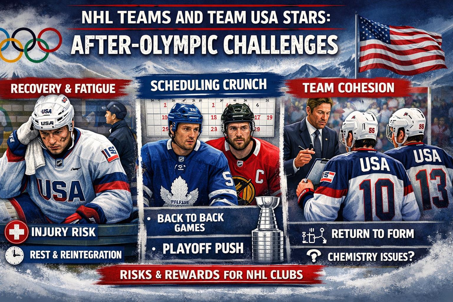 By the time the Winter Olympics are over in 2026, NHL clubs whose players are on Team USA will be facing a difficult post-Olympics timetable, having to cope with recovery and reintegration, as well as the health of their star talent. Although participation in the Olympics is a source of pride to both the players and the franchises, it is usually accompanied by a tight deadline and thus the team has to strategically decide on how to bring the athletes back to the field.